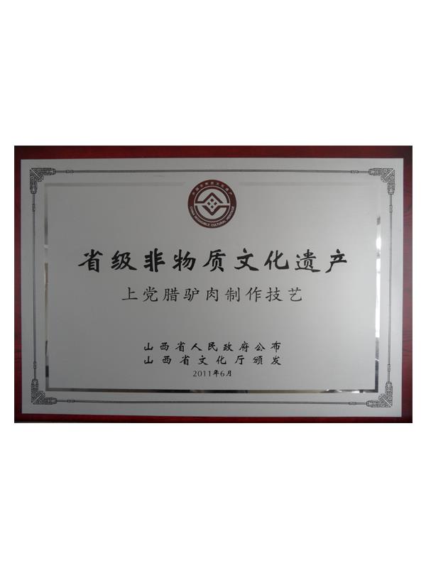 《本草綱目》第五十卷記載有:“驢肉味甘、無毒、解心煩、止風(fēng)狂、能安心氣、補(bǔ)血益氣、治遠(yuǎn)年勞損”的作用,尤其對失眠、健忘、眩暈、營養(yǎng)不良、貧血癥有獨(dú)特療效。上黨臘驢肉是山西長治市的漢族傳統(tǒng)名吃,其肉質(zhì)肥而不膩、瘦而不柴、香味四溢、回味無窮。早在明代,臘驢肉就已馳名于上黨和晉南地區(qū),產(chǎn)品遠(yuǎn)銷北京、天津、南京等南北名城。臘驢肉與當(dāng)?shù)氐臎龇?、酥火燒被稱為潞安府(長治古稱潞安府)三寶。